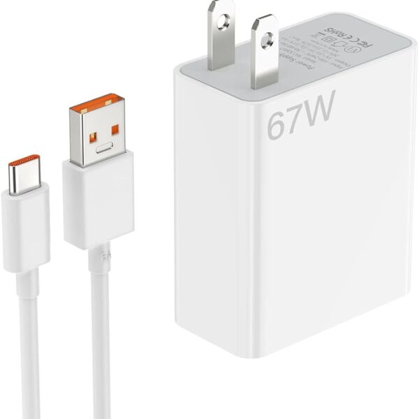 شارژر اصلی فست شیاومی ۶۷ وات سرکارتنی + کابل ۶ آمپر(۲پین آمریکایی)