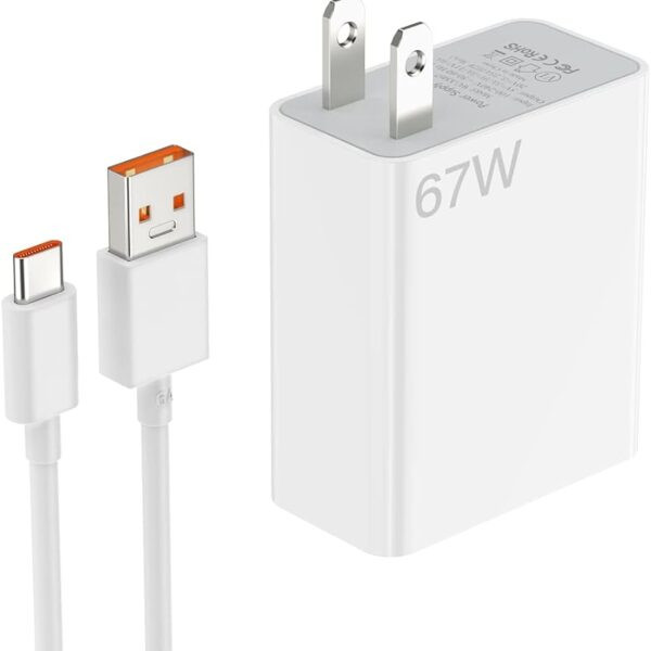 شارژر اصلی فست شیاومی ۶۷ وات سرکارتنی + کابل ۶ آمپر(۲پین آمریکایی)