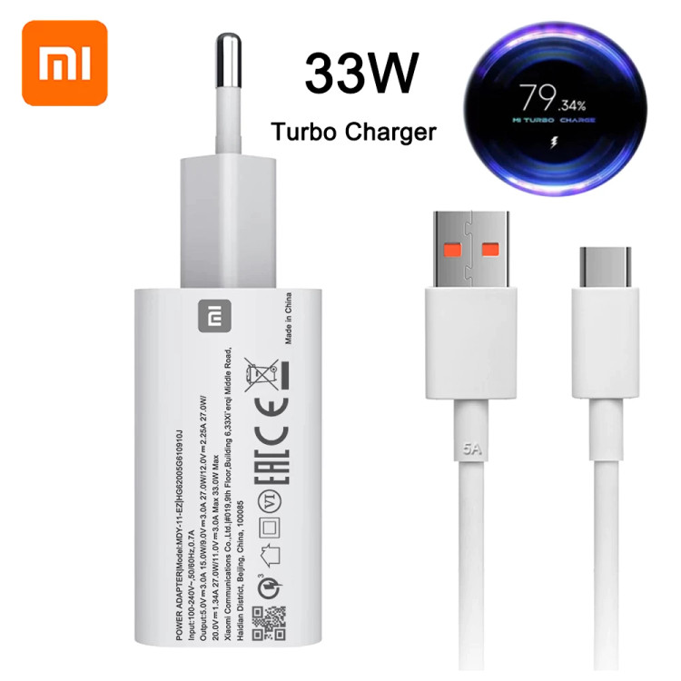 شارژر دیواری شیاومی فست ۳۳ وات مدل MDY 16 EF سر کارتنی دو پین ایرانی همراه با کابل ۴آمپر